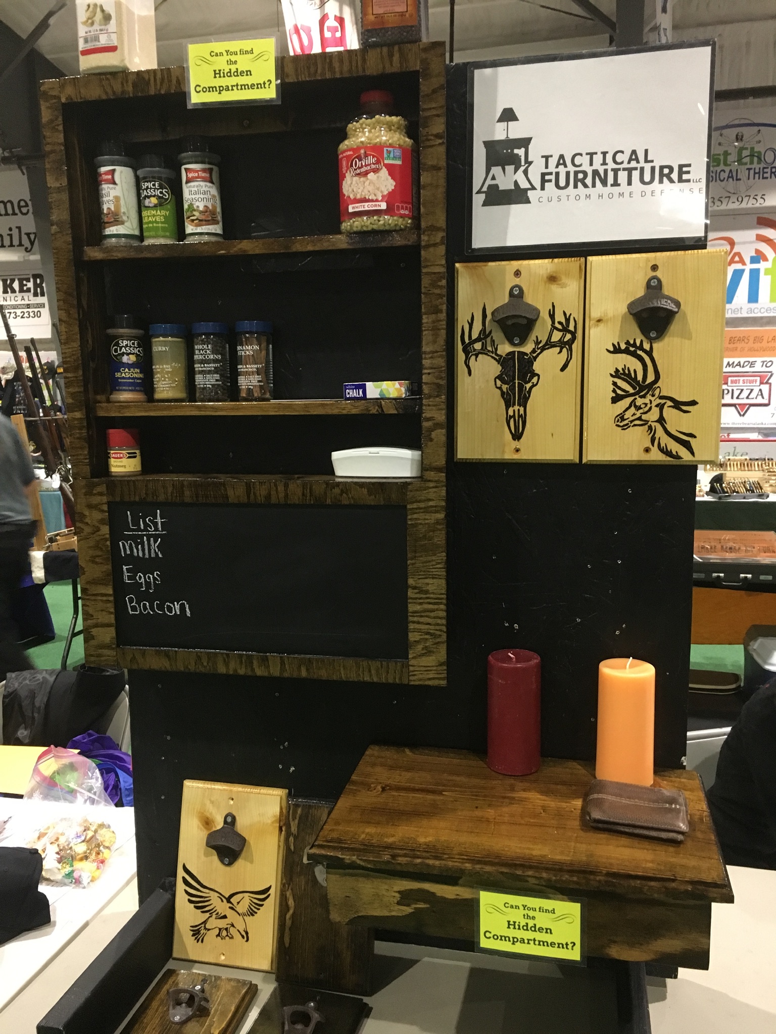 Home Defense Furniture, Sign Rental Services, Antique Restoration, Custom Woodworking, Custom Cornhole Sets, Hidden Gun Compartments
